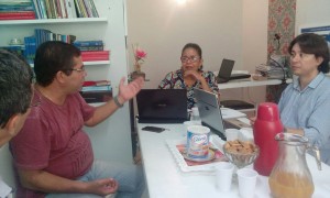 Membros da comissão Pró-Comitê do CBH do Rio Turiaçu, os conselheiros do CONERH, Manoel Araújo e Anacleide Andrade, o secretário de meio ambiente de Santa Helena, Saulo Arouche, a coordenadora de meio ambiente e turismo do município Pedro do Rosário, Fátima, a assessoria de Comunicação da Prefeitura de Santa Helena, Melquíades Costa e a vice-coordendora nacional do Fonasc.CBH, Thereza Christina Pereira Castro se reuniram na manhã desta quinta-feira, 17, no escritório do Fonasc.CBH em São Luís para articulação de formação do Comitê de Bacia Hidrográfica (CBH) do Rio Turiaçu.