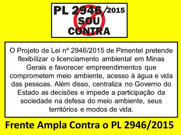 Na pauta da reunião está a apresentação e discussão do Projeto de Lei nº 2.946/2015, que causou muita polêmica e mobilização das organizações da sociedade civil para que o PL não retroceda na concessão de licenças ambientais no Estado. O projeto trata de alterações no SISEMA.