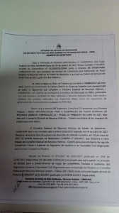 Em 9 de maio deste ano, é assinada a ordem de serviço vp, IBI Engenharia Consultiva S/S para então iniciar os trabalhos de elaboração do Plano de Recursos Hídricos. Ele explica que empresa apresentou seu plano de trabalho em junho deste ano, quando o CONERH encontrava-se em processo de eleição.