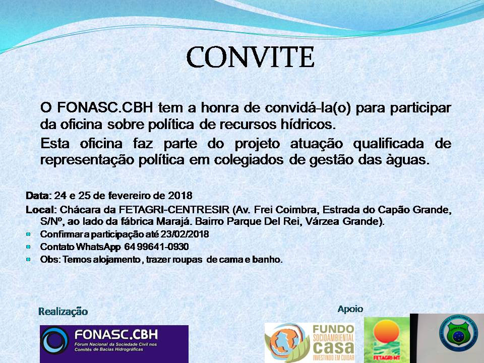 março 2, 2018 joaoclimaco NOTÍCIAS FONASC PANTANAL REALIZOU – OFICINA SOBRE A POLITICA DE RECURSOS HÍDRICOS