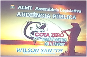Essa Audiência Pública teve como proposito dar voz ao povo, para que a população pudesse se pronunciar sobre o projeto proposto e apresentado a Assembleia Legislativa, pelo Governador do Estado de Mato Grosso Mauro Mendes Ferreira, Projeto Cota Zero, que já está na Assembleia para ser votado e transformado em lei, assim como o dourado foi proibido a pesca por um certo período, esse projeto a ser votado proíbe muita coisa, inclusive o transporte do peixe, só se pode pescar e comer na beira do rio, proibindo o transporte do peixe.