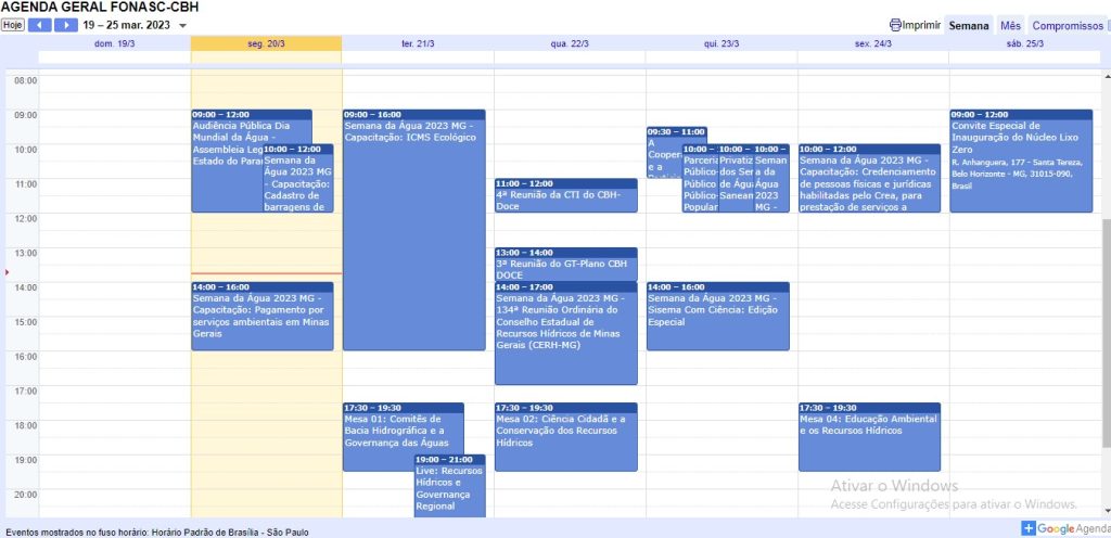 Agenda Geral do FONASC.CBH: 20/03 até 25/03