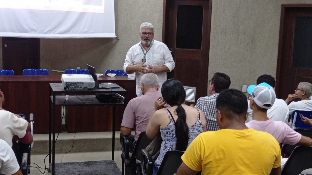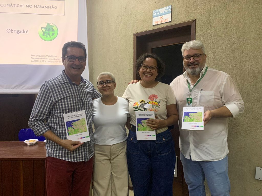O evento iniciou com o lançamento do livro “Clima Urbano da Cidade de São Luís do Maranhão” pelo professor Dr. Juarez Mota. Ele explicou que decidiu escrever o livro devido à ausência de pesquisas sobre esse tema específico na cidade. Em sua apresentação, Juarez abordou os três principais eixos tratados no livro: temperatura, que se subdivide no conforto térmico e na temperatura propriamente dita; pluviosidade, que explica como a chuva cai e como se distribui; e o eixo físico-químico, relacionados à poluição. Ele destacou a importância desses eixos para compreender a complexidade do clima urbano de São Luís atualmente.