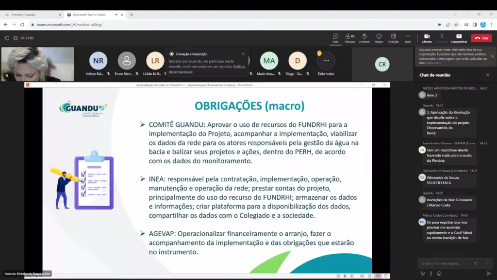 Durante a reunião, a conselheira Uiara Martins não hesitou em fazer uma série de observações incisivas. Ela questionou diversos aspectos, indagando sobre o montante total de recursos a serem disponibilizados, a responsabilidade intrínseca do INEA no monitoramento, e as razões pelas quais o INEA solicita recursos sem responder aos ofícios enviados pelo CBH, citando casos de 2020.