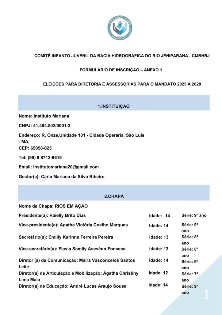 No dia 28 de abril, o Comitê Infantojuvenil da Bacia Hidrográfica do Rio Jeniparana (CIJBHRJ) realizou no Instituto Socioassistencial Educando a eleição seguida de posse da 4ª Diretoria Executiva do comitê, celebrando seus 14 anos de história com um processo democrático, participativo e repleto de protagonismo juvenil.